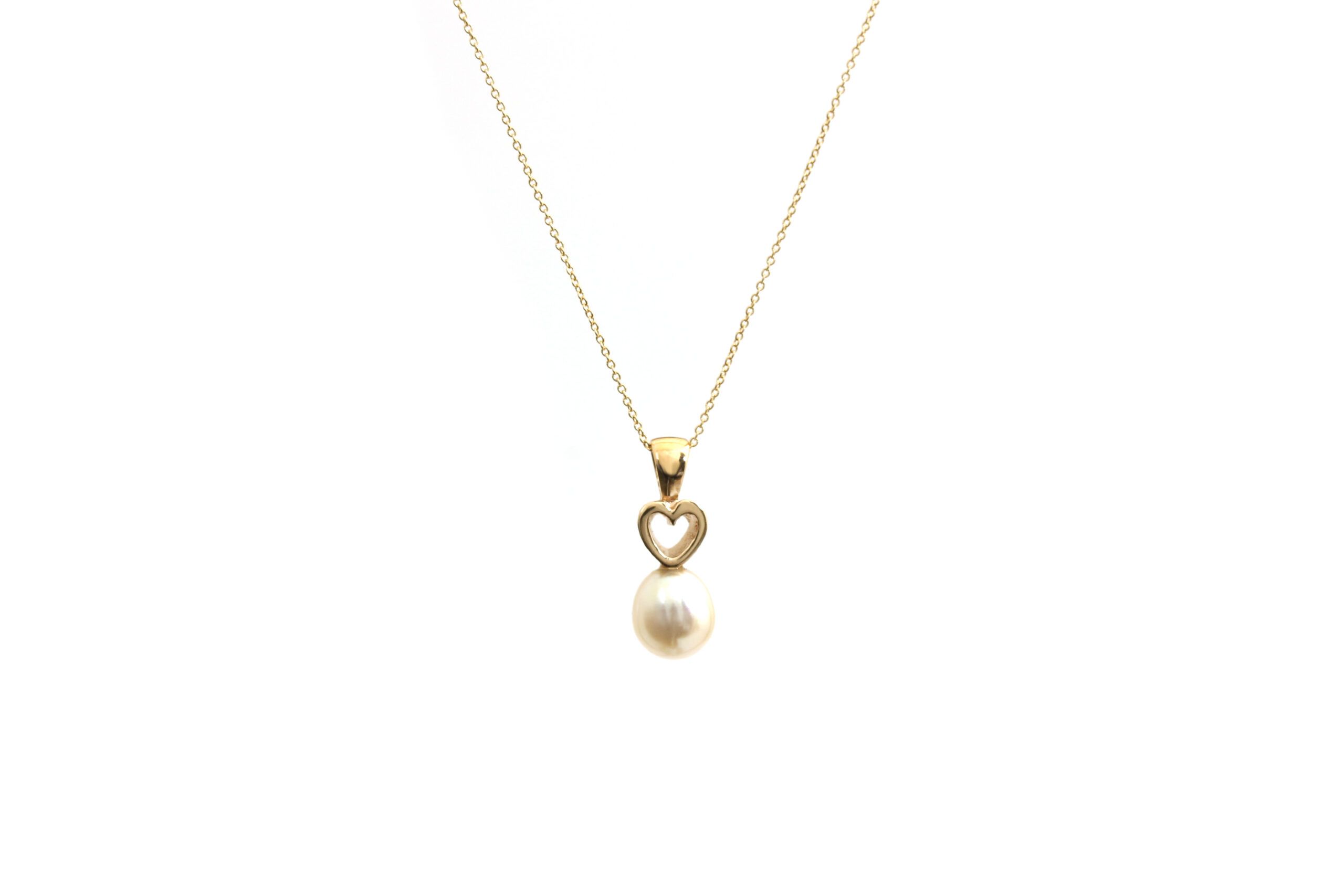 Et åbent hjerte i guld bærer en smuk hvid ferskvandsperle – et klassisk udtryk for kærlighed og renhed. Kombinationen af hjertets lethed og perlens bløde glans giver vedhænget et feminint og elegant udtryk, der passer til enhver anledning. Håndlavet i Danmark med sans for de små detaljer.